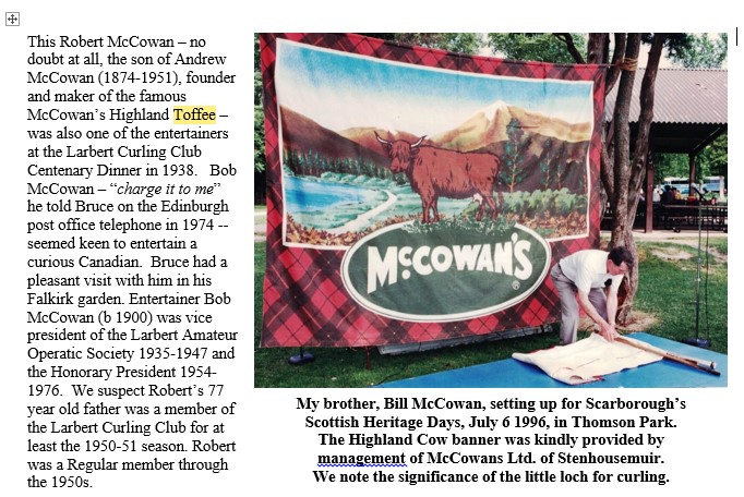 A Fitting Repatriation on June 5, 2025 Unfortunately McCowan's Ltd. of Stenhousemuir closed their Highland Toffee factory doors in 2011. But the significance (to all of Scotland) of McCowan's Highland Toffee -- and the Highland Cow -- definitely lives on... By way of an introduction... Greetings were received from David Hunter of the Scottish Studies Foundation. We were pleased to learn that the McCowan Toffee